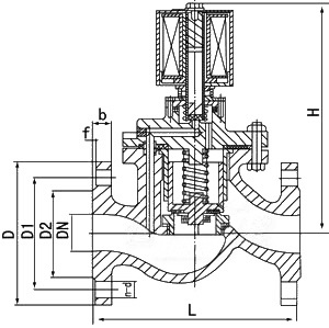 本閥是有副閥和主閥兩大部件構(gòu)成的先導(dǎo)式二次開闊的電磁閥。是靠副閥的啟閉來控制主閥的通斷。根據(jù)斷電時所處開關(guān)狀態(tài)的不同,可分為常閉電磁閥和常開電磁閥。常閉電磁閥,在段點常位時,副閥口封閉,主閥呈斷路,當電訊號進入導(dǎo)閥線圈時,活動鐵芯受電磁力作用吸上打開副閥口,主閥閥杯內(nèi)壓力導(dǎo)速消失,介質(zhì)壓力將主閥閥杯托上,開啟主閥,工作介質(zhì)便可流通。但當電訊號消失時,活動鐵芯復(fù)位,封閉住副閥口,工作介質(zhì)自平衡孔進入閥內(nèi),當壓力趨于平衡時,靠主閥彈簧,閥杯自重及介質(zhì)壓力使閥杯下移,嚴密封住主閥口,閥有呈封閉狀態(tài)。常開電磁閥,在斷電常位時,有彈簧作用,副閥口打開,主閥流通。當電訊號進入副閥線圈時,活動鐵芯受電磁作應(yīng)吸下,當壓力趨于平衡時,靠主閥彈簧、閥杯自重及介質(zhì)壓力使閥杯下移,嚴密封住閥口,閥門呈關(guān)閉狀態(tài)。當主閥斷電時,電磁力消失,副閥找開,主閥杯內(nèi)壓力迅速消失,介質(zhì)壓力將主閥閥杯托上,開啟主閥口,介質(zhì)流通,閥呈開啟狀態(tài)。