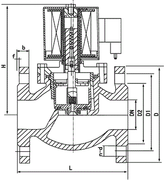 本閥為分步動作直接先導式電磁閥,可根據斷電時所處開、關狀態(tài)的不同,可分為常閉式電磁閥和常開式電磁閥。常閉電磁閥,線圈通電后,銜鐵在電磁力作用下先帶動副閥閥塞提起,主閥閥杯上的流體經副閥流走,減少了作用在主閥閥杯上的壓力,當主閥閥杯上的壓力減少到一定值時,銜鐵帶動主閥閥杯,并利用壓差而使主閥閥杯開啟,介質流通。線圈斷電后,電磁力消失,銜鐵因自重下落復位。同時依靠介質壓力,主副閥得以緊密關閉。常開電磁閥,線圈通電后由于吸力作用,動鐵芯下移,把副閥閥塞壓下,副閥關閉,主閥閥杯內壓力上升,當壓力升到一定值時,主閥閥杯的上下壓差一樣,由于電磁力作用,動鐵芯推動主閥閥杯下,壓緊主閥閥座,閥門關閉。線圈斷電時,電磁吸力為零,副閥閥塞和動鐵芯由于彈簧作用向上提起,副閥打開,主閥閥杯上的流體經副閥流走,減少了作用在主閥閥杯上的壓力,當主閥閥杯上的壓力減少到一定值時,利用壓差把主閥閥杯推起,主閥打開,介質流通