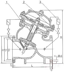 1, main valve 2, flow control valve 3, filter.