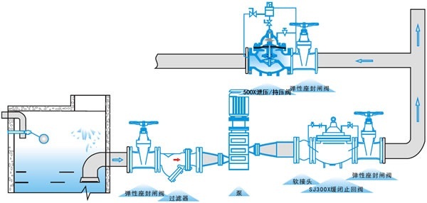 500X泄壓/持壓閥由主閥、泄壓/持壓導(dǎo)閥針閥、球閥、微形過濾器和壓力表組成水力控制接管系統(tǒng)。利用水力自動(dòng)操作,即可以作泄壓閥用又可作持壓閥用。作泄壓閥用時(shí),可維持供水路壓力在設(shè)定的安全值之下;做持壓閥用,可維持主閥上游水壓在設(shè)定值之上,保持主閥上游供水壓力。
